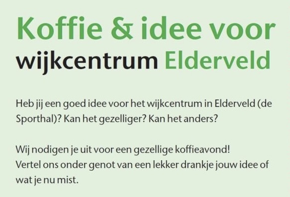 Op woensdagavond 16 oktober kwam een aantal bewoners op uitnodiging van Team Leefomgeving bij elkaar in Wijkcentrum Elderveld. Wij wilden graag weten of er animo is om van het wijkcentrum een bruisende plek voor de wijk te maken.