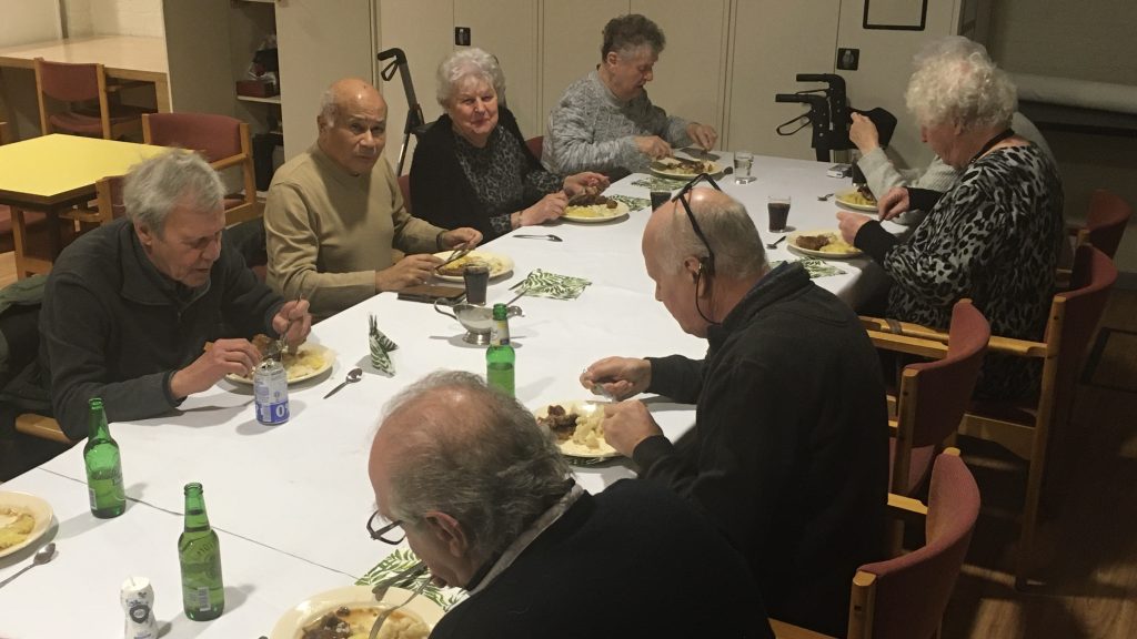 Elke zondag komen een aantal bewoners van de Vivareflat Elderveld (voorheen Serviceflat Elderveld) aan de Gorinchemstraat 50 bijeen in de recreatiezaal om gezellig en lekker te eten. De keukenbrigade, bestaande uit Gerdjan en Annelies, zorgen altijd voor een eenvoudige en smakelijke maaltijd met een drankje en een toetje. En dat voor slechts € 7,50. Waar kan dat nog?