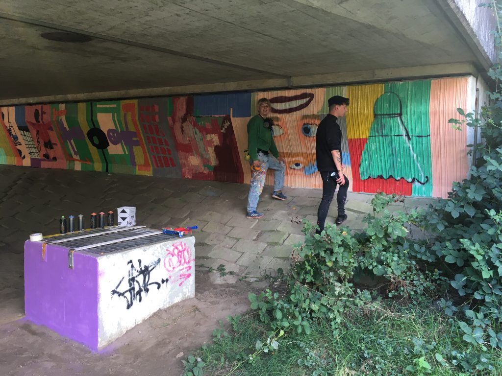 Diegenen die regelmatig door de tunnel van het Viaduct Elderhof komen zal het al wel opgevallen zijn. De tunnel wordt enorm opgefleurd door kleurrijke muurschilderingen met leuke afbeeldingen. Was het voorheen maar een sombere onderdoorgang, nu ziet het er heel wat aantrekkelijker uit.