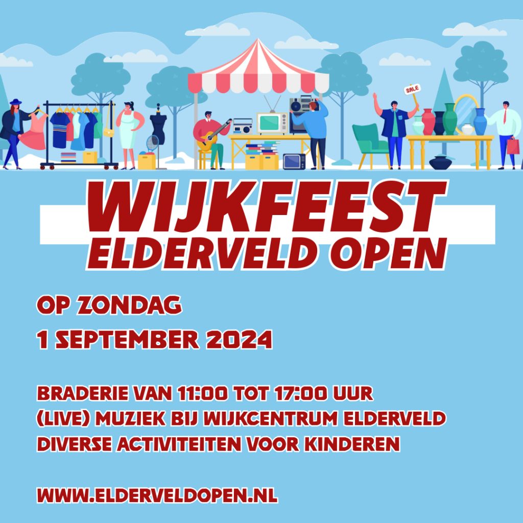De braderie zal zijn van 11:00 tot 17:00 uur. De braderie zal langs een gedeelte van Elderhofseweg richting het Wijkcentrum Elderhof gaan. We hebben weer een divers aanbod. Loop eens alle kramen met diverse commerciële, tweedehandse en zelfgemaakte artikelen. Er zullen ook enkele informatiekramen aanwezig zijn, zoals het Wijkplatform Elderveld en Leger des Heils.