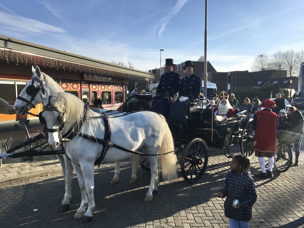 Afgelopen zondag 1 december bracht Sinterklaas met zijn gevolg een bezoek aan onze wijk. Volgens traditie werd de organisatie verzorgd door de wijkvereniging. Kinderen van 2 tot 8 jaar konden Sinterklaas toejuichen en toezingen tijdens de rijtoer. En in het wijkcentrum konden de kinderen hem nog eens toezingen, cadeautjes in ontvangst nemen en met Sint samen op de foto. Met de volgende foto’s doen we verslag van het feestelijke gebeuren.